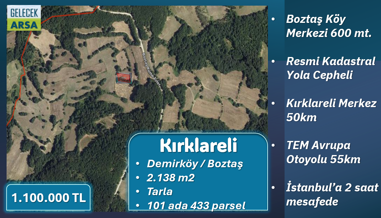 KIRKLARELİ DEMİRKÖY’DE 2.138 M2 TARLA